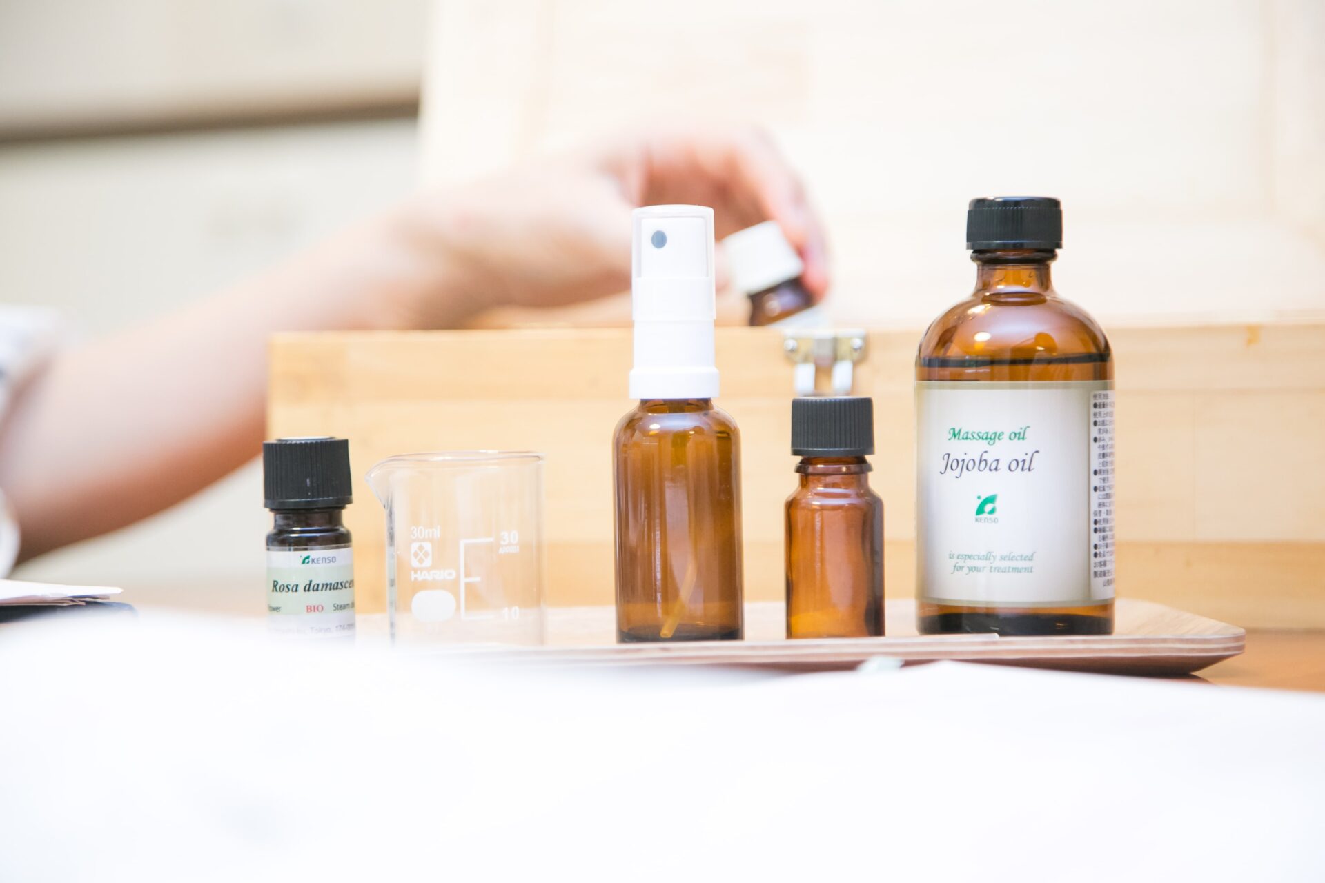 芳香植物(ハーブ)から高濃度な香りの成分を抽出した「精油」を使用して、身体の健康や美容、心のケアに役立てる植物療法・自然療法。