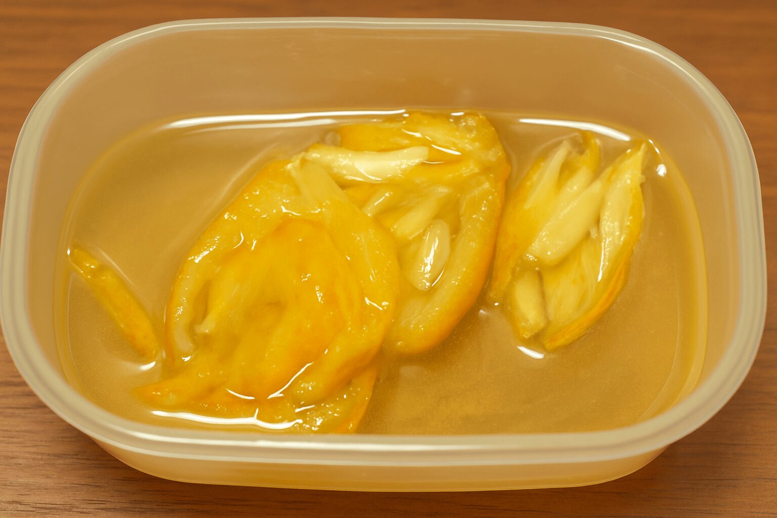 貴重な一つなので、皮までまるごと味わえるよう、はちみつ漬けにしました。